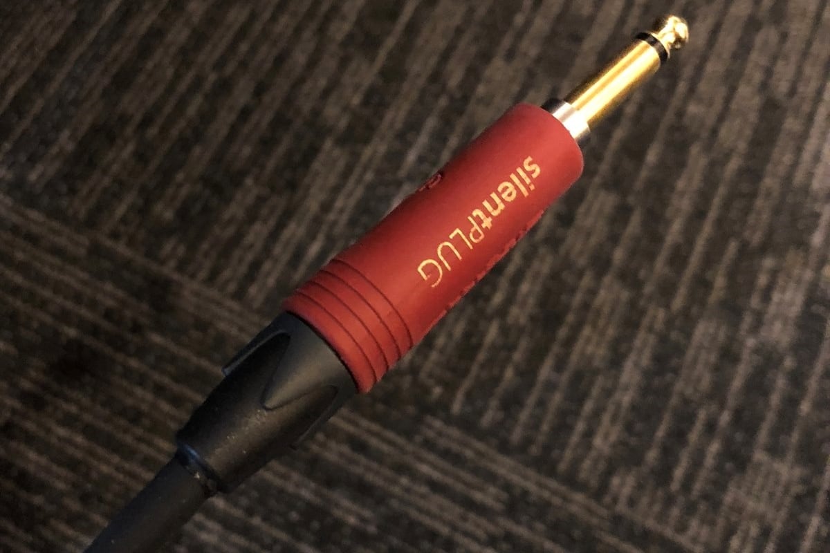 プラグにシールド抜くと自動的に信号が遮断される仕組みのノイトリック製サイレントプラグがついていて、アンプに繋いだままギターから抜いても ”ブー” というノイズが出ることがありません。